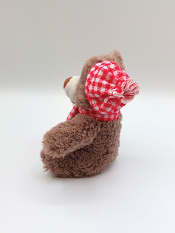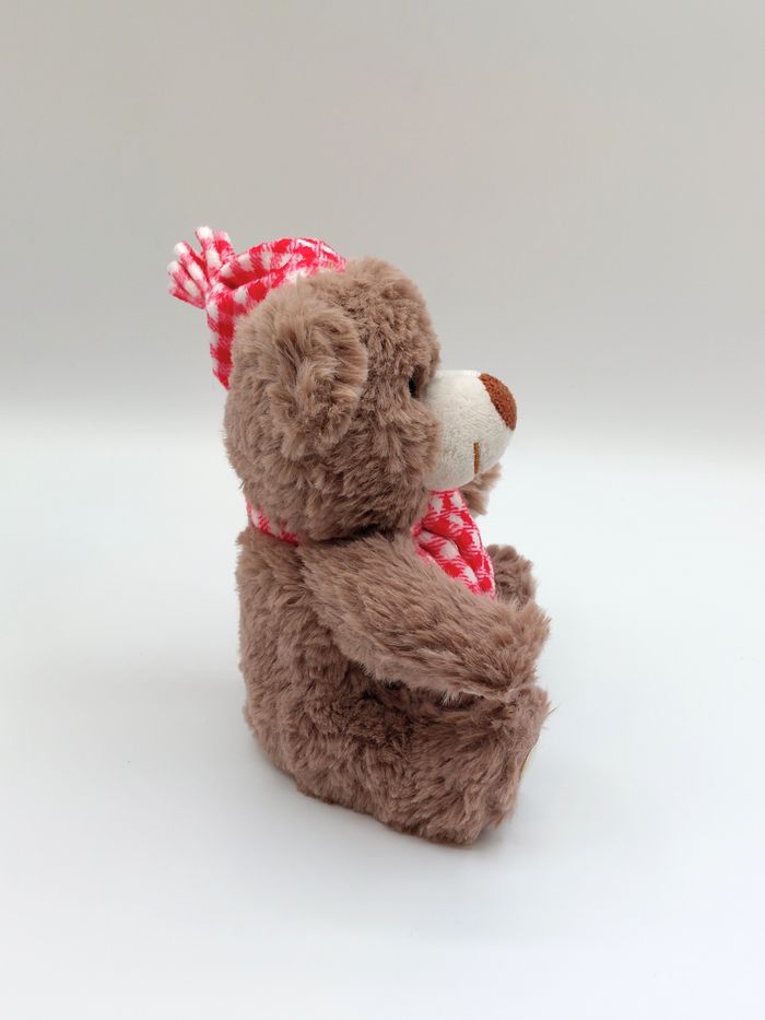 Peluche doudou ours marron écru 3Pagen écharpe bonnet rouge blanc carreaux 18 cm - photo numéro 6