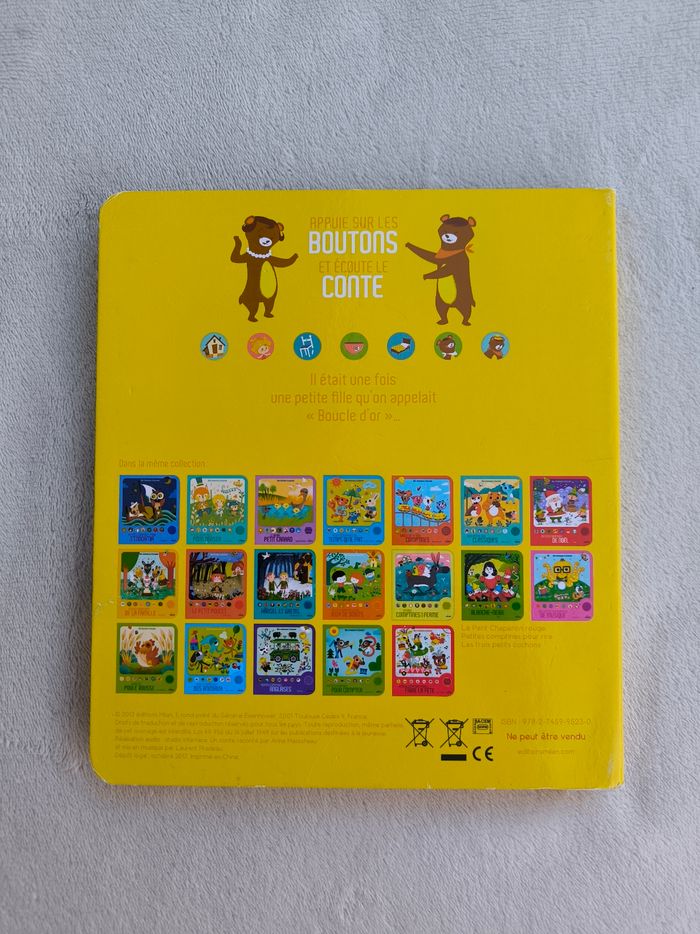 Livre sonore Une histoire à écouter : Boucle d'or et les trois ours Éditions Milan • Pages cartonnées • Conte à écouter • Intérieur du livre en très bon état • Coins abîmés Fonctionne Piles incluses En très bon état #evelyne_livres