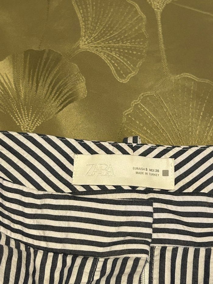 Jolie jupe-short à rayures fines noir & blanc, hyper flatteuse et pratique grâce au short intégré. Elle a une taille haute qui marque bien la silhouette et allonge les jambes. 🌸 Détails : • Taille S • Modèle jupe-short (confort + style) • Motif rayures fines verticales • Coupe élégante et féminine • Matière agréable, bonne tenue • Fermeture discrète • Ne serre pas, tombe parfaitement 💫 Facile à porter : avec un top près du corps, une chemise, des baskets ou des sandales. Comme neuve