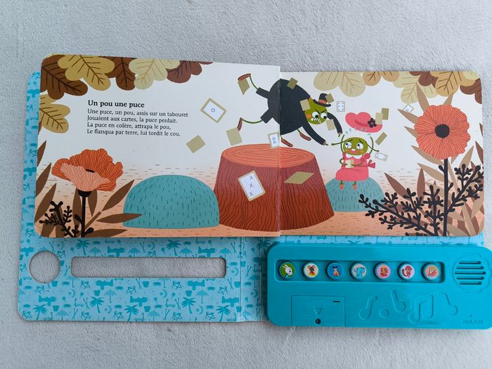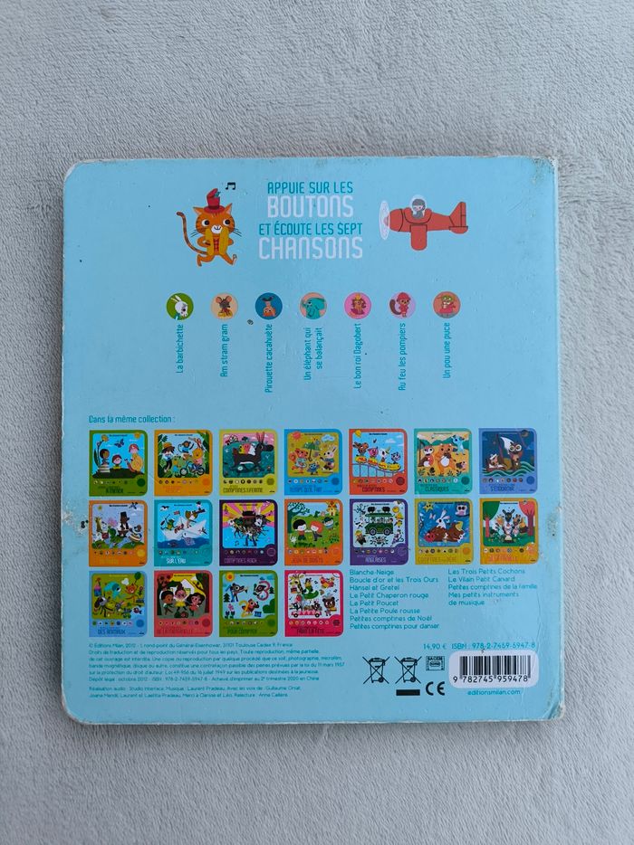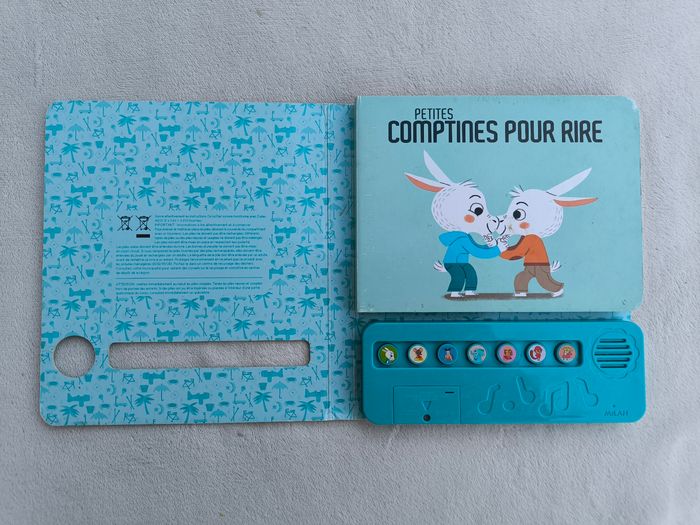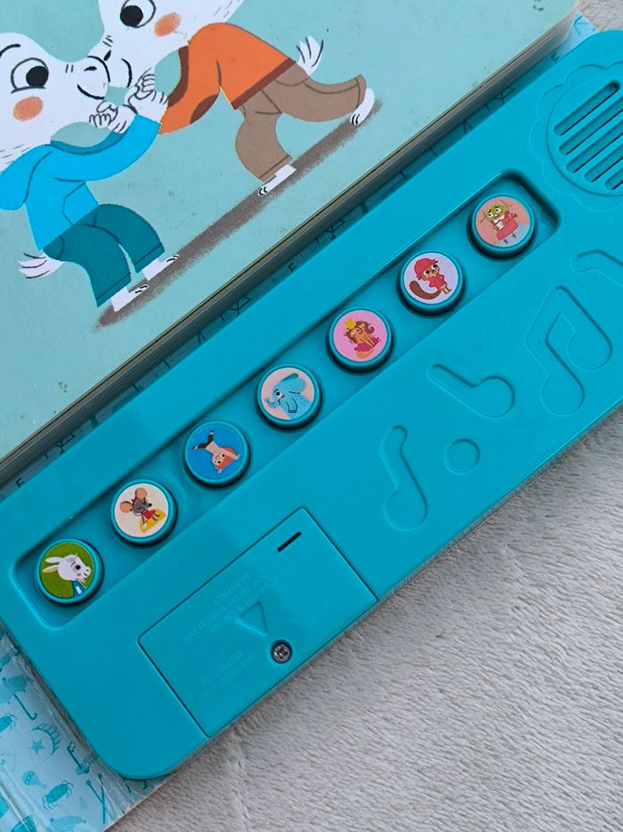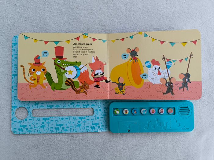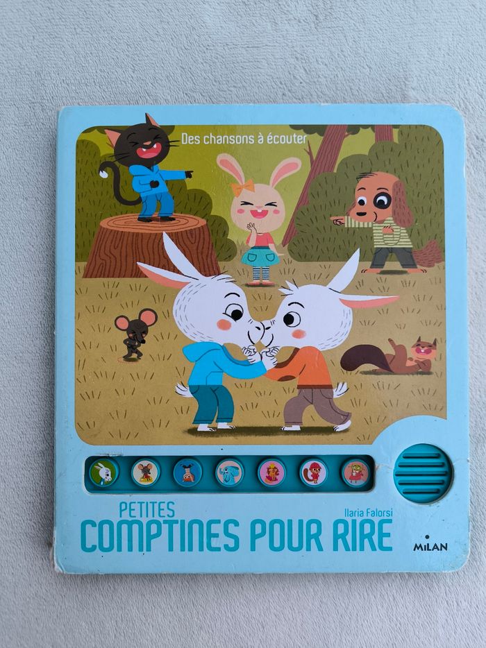 Livre sonore musical Des chansons à écouter : Petites comptines pour rire Éditions Milan • Pages cartonnées • 7 chansons : -> La barbichette -> Am stram gram -> Pirouette cacahuète -> Un éléphant qui se balançait -> Le bon roi Dagobert -> Au feu les pompiers -> Un pou une puce • Intérieur du livre en très bon état • Coins et arêtes abîmés ⚠️ D'autres livres dans la même collection Fonctionne Piles incluses En bon état #evelyne_livres