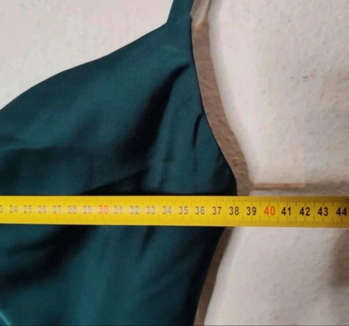 Superbe robe longue Azazie, couleur vert émeraude, en tissu satiné fluide et élégant. Coupe ajustée sur le haut avec fines bretelles réglables, décolleté en V et drapé sur le côté pour un effet très flatteur. Idéale pour un mariage, une soirée ou un événement chic. 🔹 État : Très bon état 🔹 Taille : A6 (équivalent EU 36–38) 🔹 Longueur totale : ~155 cm 🔹 Largeur poitrine : ~37–40 cm (à plat, extensible grâce à la coupe) 🔹 Largeur taille : ~31 cm 🔹 Fermeture : Zip discret dans le dos 🔹 Matière : Satin polyester (nettoyage à sec uniquement) Comme neuve La robe tombe très bien, le tissu a un beau tombé et un joli reflet satiné. #azazie #robelongue #robesoirée #robeinvitée #weddingguestdress #vertemeraude #robesatinée #eveningdress #robechic #modefemme #vente