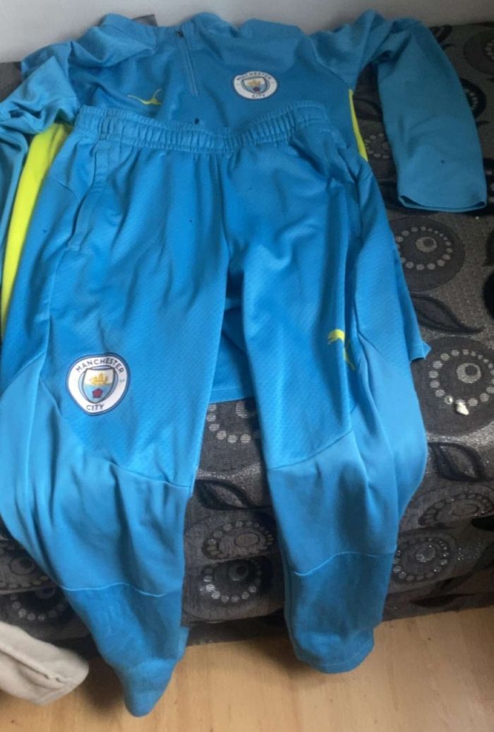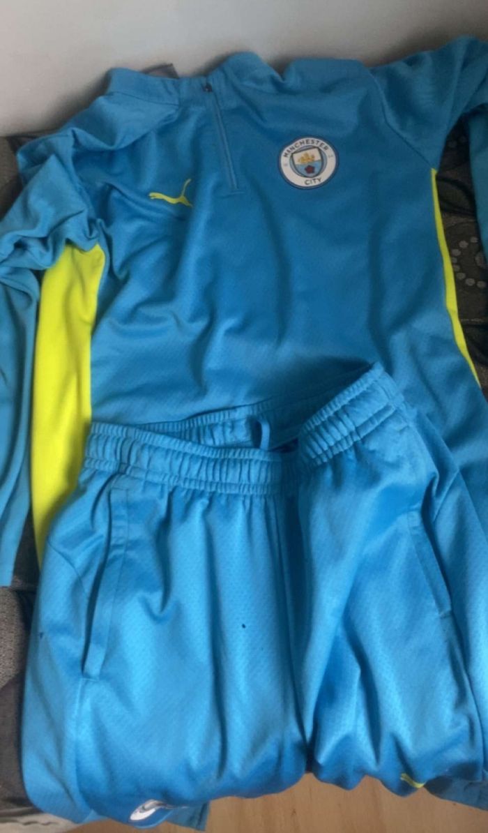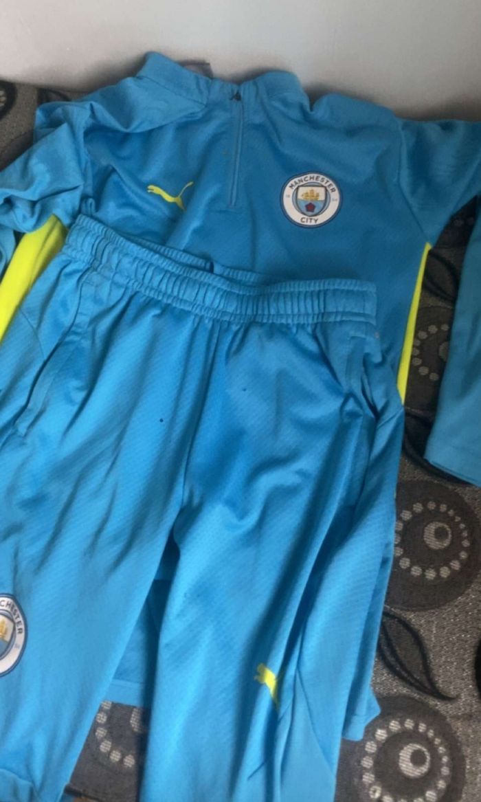 Je vends cet ensemble de survêtement Manchester City de couleur bleu ciel de l’année 2024. - Type de produit : Ensemble de survêtement - Marque : Puma - Taille : S - Couleur : Bleu ciel - Caractéristiques : Fermeture éclair, Patch logo Manchester City N'hésitez pas à me contacter pour plus d'informations ou de photos. 20€ Envoi très soigné possible ou remise en mains propres sur Marseille 13005 souhaitée