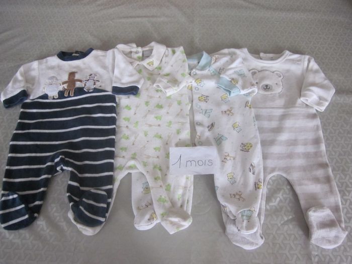 1m, 4 pyjamas : 3 velours + 1 coton, kiabi