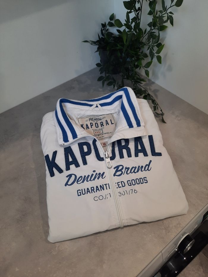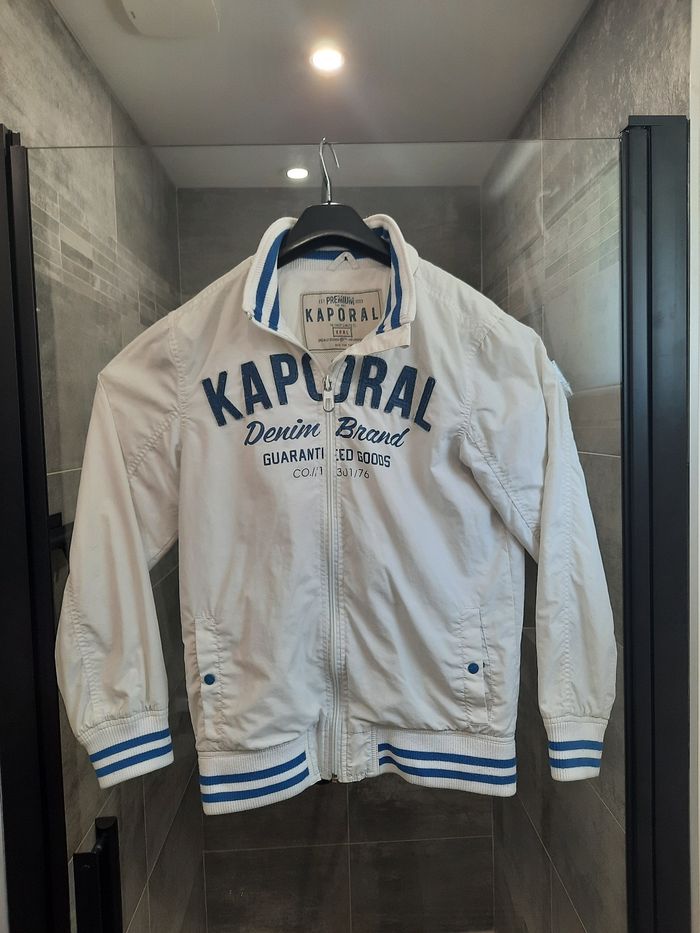 Veste à zip Kaporal blanche, style casual. Taille S – mesures dispo en photo. 🌟 Détail : logo Kaporal discret sur la poitrine 🧶 Matière : coton mélangé, confortable et résistant ✅ État : très bon (portée mais aucun défaut) 📦 Envoi : expédition rapide sous 48h, emballage soigné et recyclable ❓ Besoin d’infos ? Contacte-moi, je réponds rapidement !
