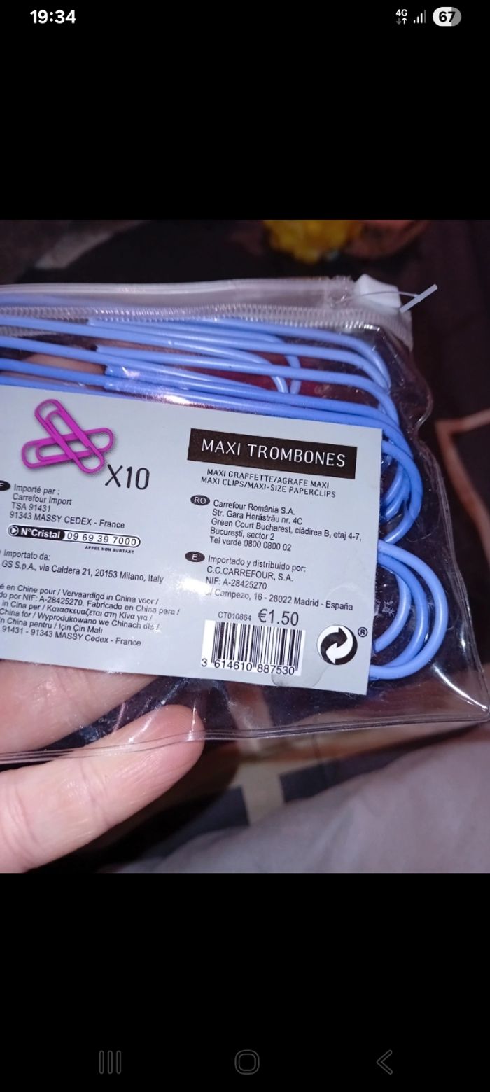 Lot de 20 grandes trombones neuves Sachets jamais ouvert Couleur rose et mauve