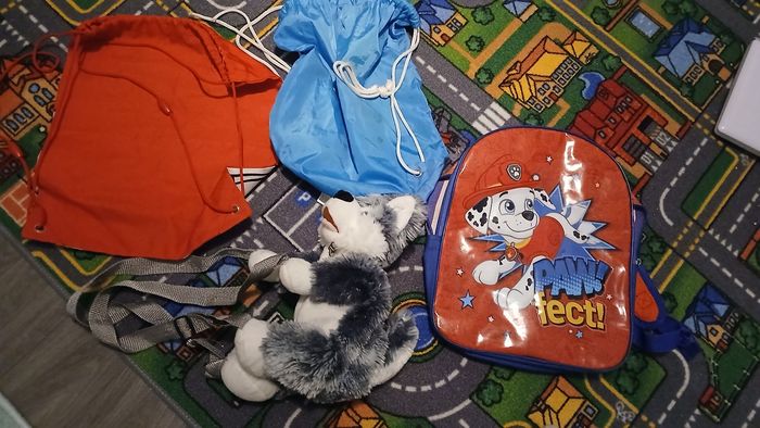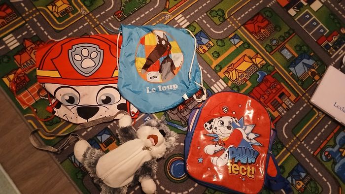 Lot de 2 sac ficelle un pat patrouille et un loup 2 sac à dos un pat patrouille et un peluche chien