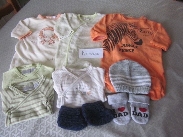 naissance, 3 pyjamas velours + 3 bodies ml + bonnet + chaussons + cho7, kiabi, canari baby