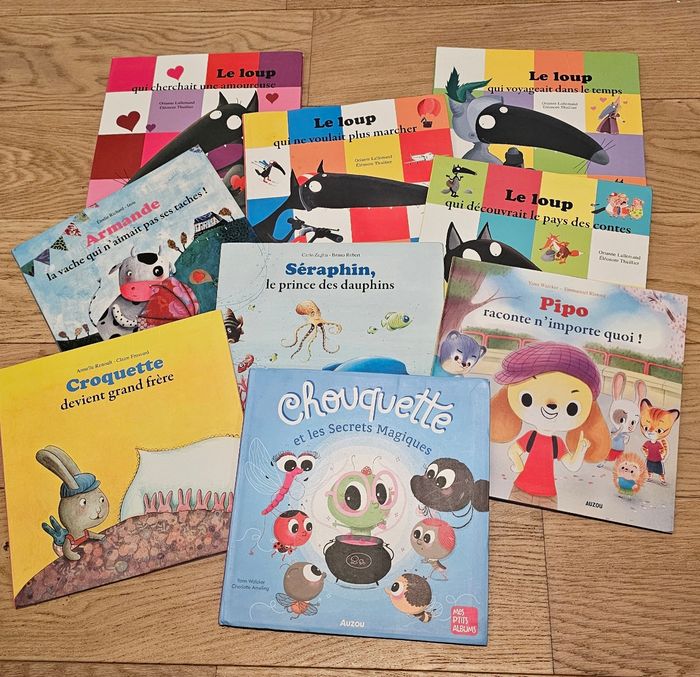 9 p'tits albums Collection Auzou Très bon état général Quelques traces d'usage possibles Remise en main propre possible sur Lyon ou envoi soigné Des réductions s'appliquent sur les lots