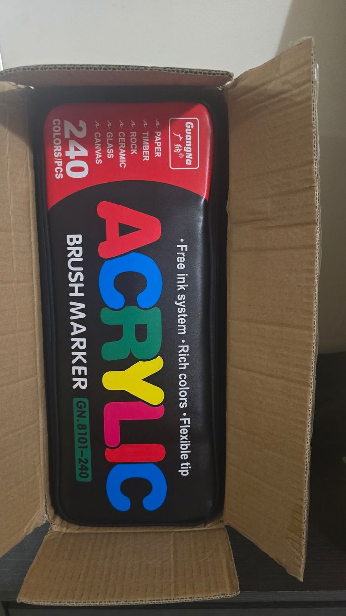 La trousse Guangna de 240 feutres acryliques neuve Le blister est enlevé mais les feutres ne sont pas utilisés
