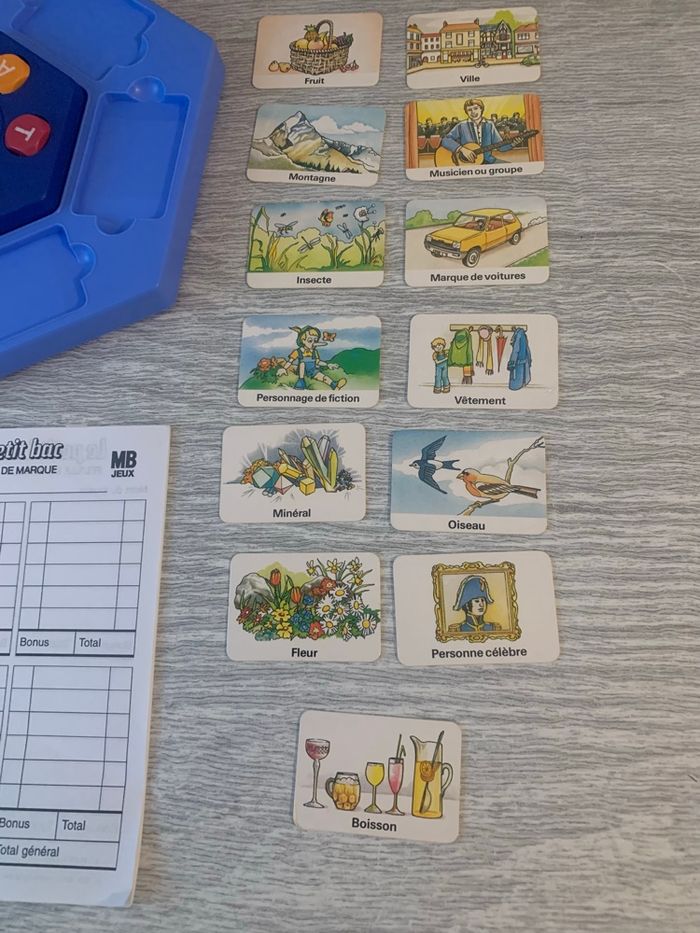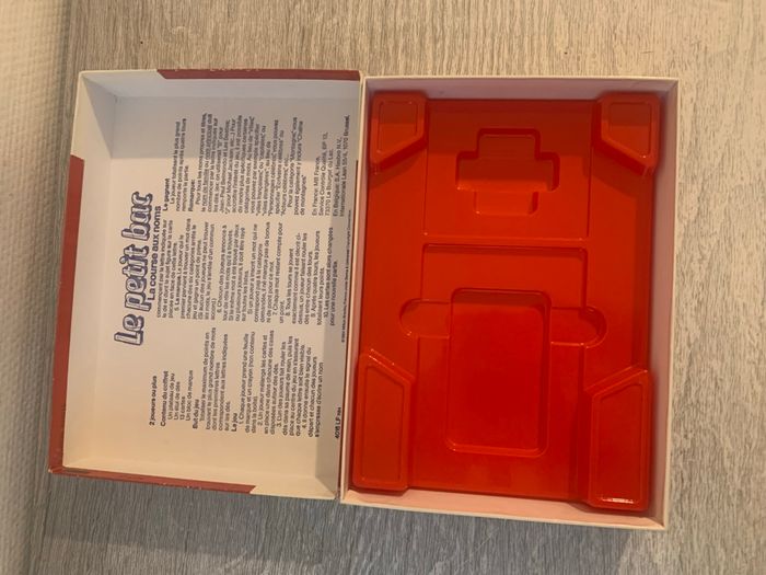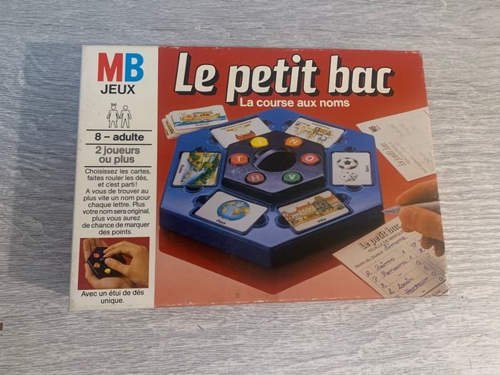 Le petit bac en bon état. Il manque des feuilles de marque. La règle du jeu est inscrit dans le couvercle de la boîte. Il y a une inscription sur le verso de la boîte (voir photo). A partir de 8 ans et de 2 joueurs. Plusieurs jeux de société à vendre dans mon profil.
