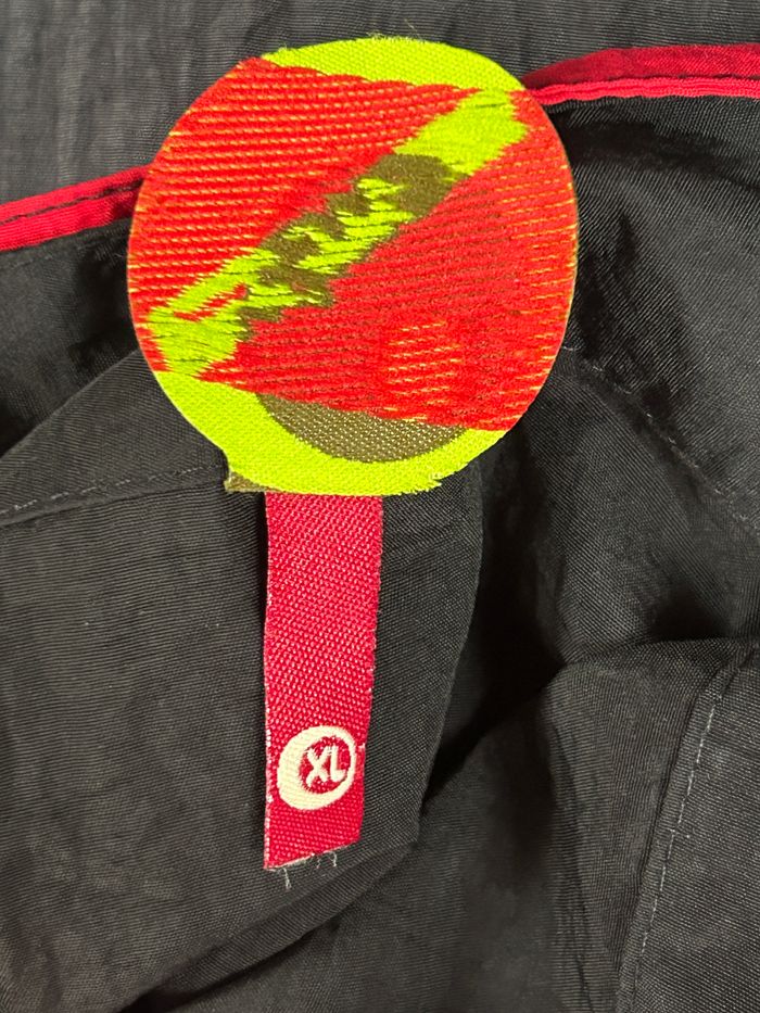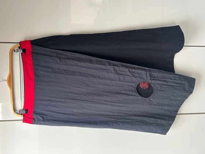 Longue jupe noire et grise Pygmees Taille XL La mesure de la ceinture à plat est de 42 cm. La longueur est de 83 cm. 100% Polyester