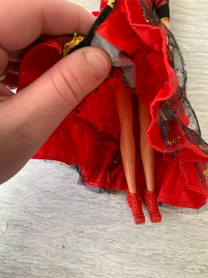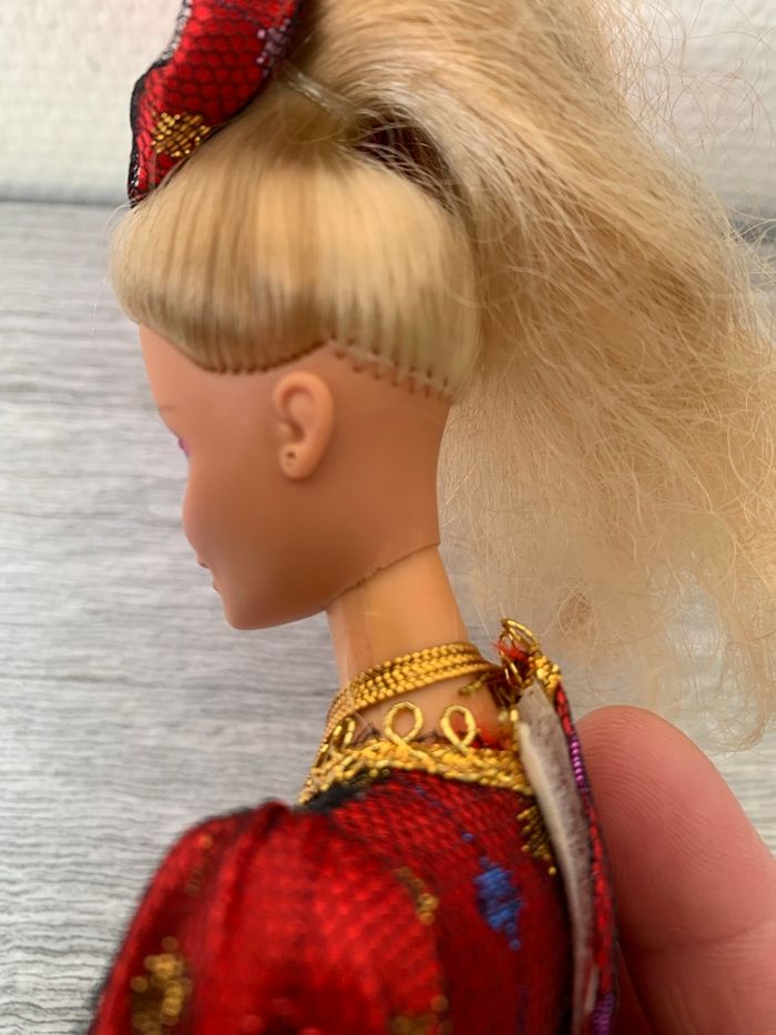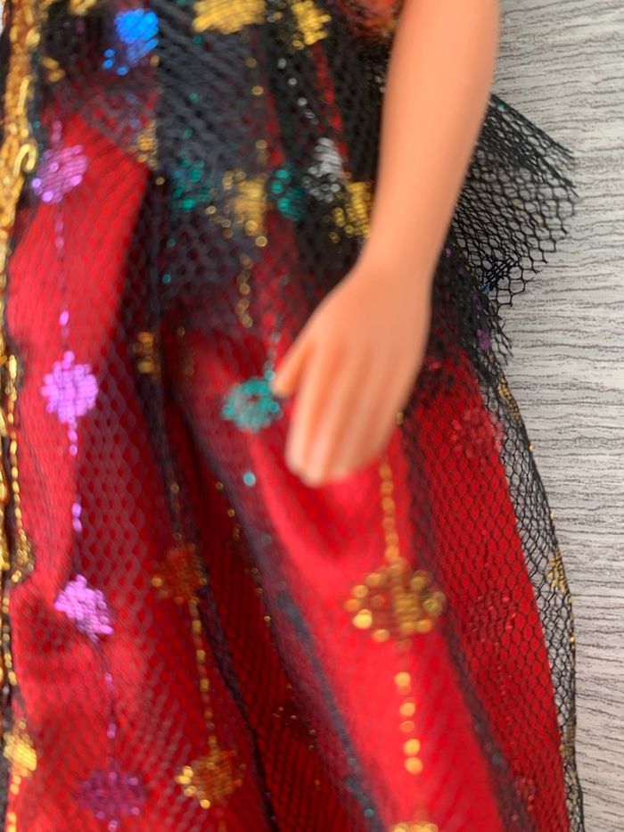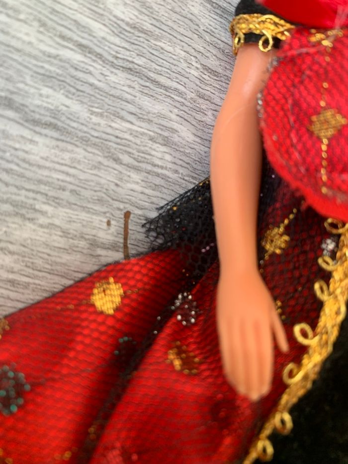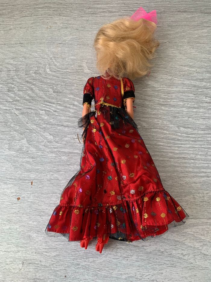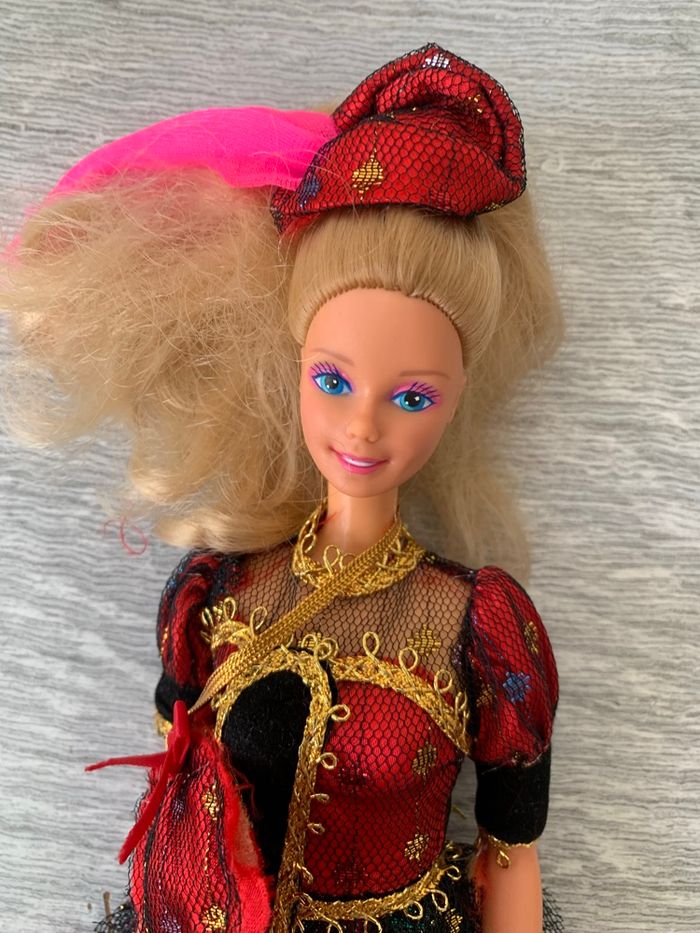 Barbie en assez bon état. Elle possède des chaussures et un sac à main. Les jambes sont plus blanches que le corps et possède des tâches et sont collantes. Manque les boucles d’oreilles. Plusieurs Barbie à vendre dans mon profil.