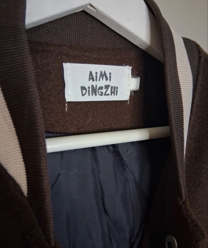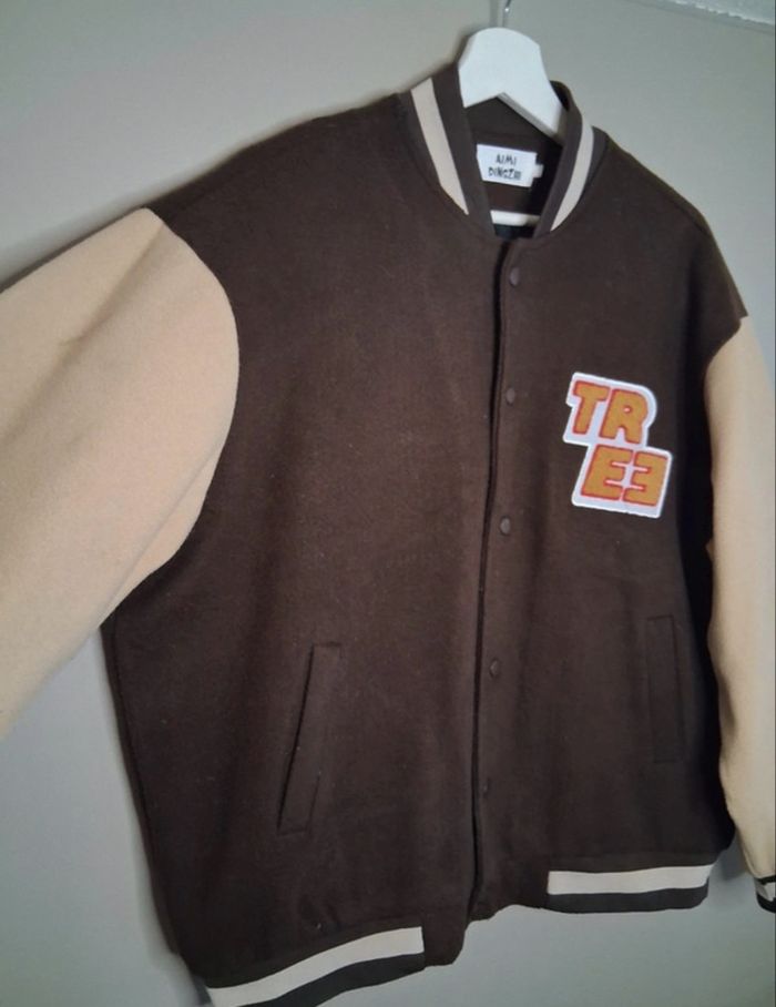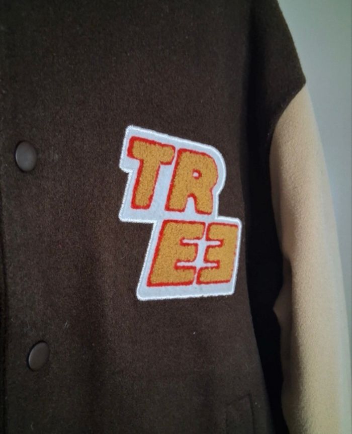 🔹 Marque : AiMi DingZhi 🔹 Couleur : Marron chocolat & manches beige 🔹 Fermeture : Boutons pression 🔹 Col, poignets et base côtelés rayés 🔹 Patch brodé “TREE” sur la poitrine 📌 État : Très bon état général #varsity #teddy #collegejacket #streetwear #vintage #oversize #unisex
