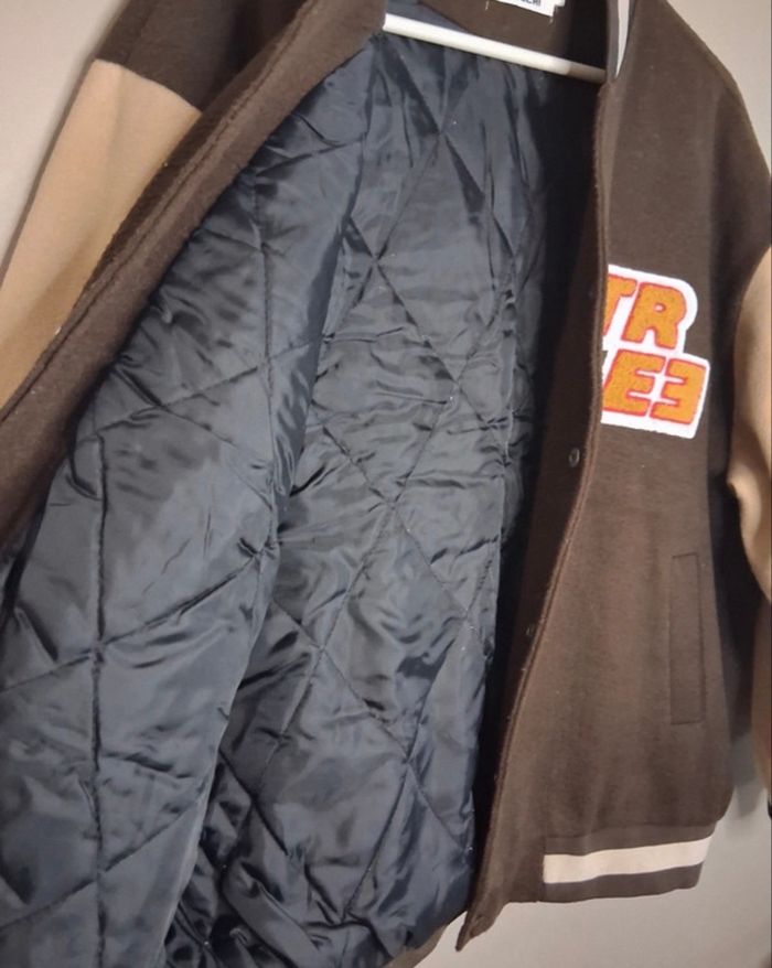 Blouson varsity / teddy marron & beige – patch brodé taille M - photo numéro 7