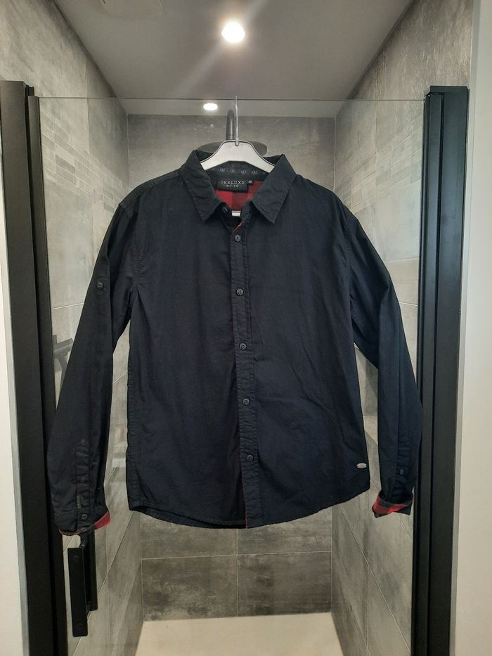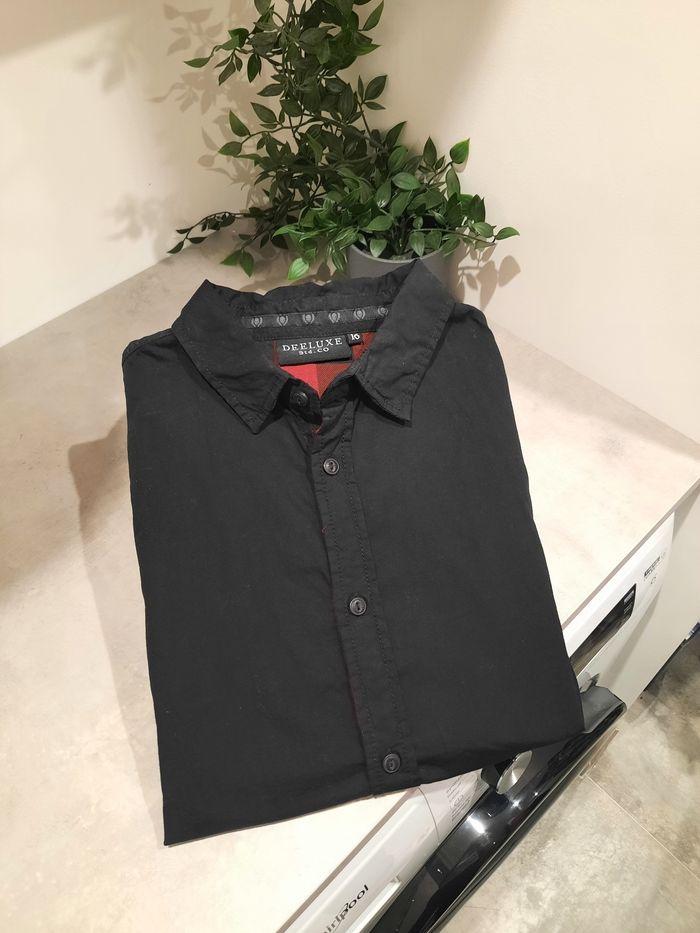 Chemise noire Deeluxe à manches longues, taille 16 ans – ado garçon. 🌟 Détail : coupe ajustée, logo discret, look élégant et moderne 🧵 Matière : tissu léger et agréable à porter (coton ou mélange – voir étiquette) ✅ État : très bon (aucun défaut, portée rarement) 📦 Envoi rapide sous 48h dans un emballage soigné et recyclable ❓ Une question ? Envoie-moi un message, je te réponds rapidement !