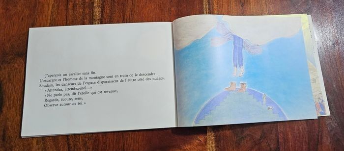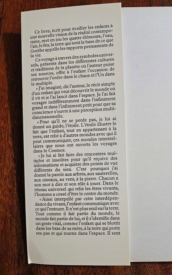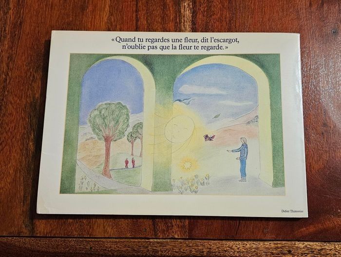 Un livre écrit et dessiné pour les enfants, qui met en jeu les quatre éléments primordiaux, l’eau l’air le feu la terre " Quand tu regardes une fleur, dit l'escargot, n'oublie pas que la fleur te regarde. " de Marie Joséphine Grojean - Albin Michel Format souple 89 pages