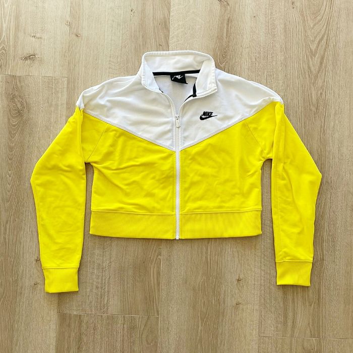 Nike Veste de survêtement Crop Top Blanc et Jaune Femme Exclusive Vintage Sportwear en très bon état (Taille M) - photo numéro 1