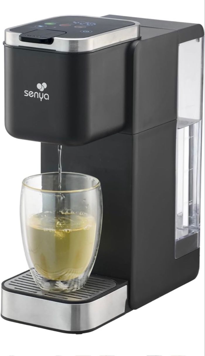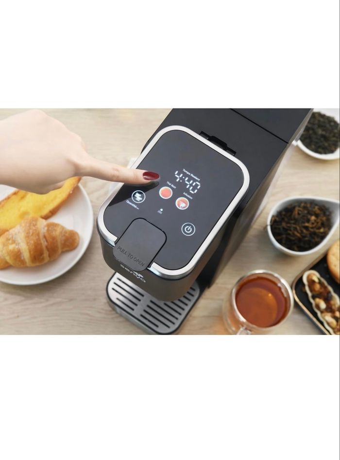 INFUSION PARFAITE ET RAPIDE : La machine à thé et tisane Senya Tea Time Pro chauffe et infuse automatiquement votre thé vert, thé noir ou sachet de thé, pour une boisson toujours réussie en quelques minutes. • COMPATIBLE THE EN VRAC ET SACHETS : Ecologique et économique, cette théière électrique sans dosette révèle tous les arômes de vos feuilles de thé préférées ou de vos sachets traditionnels. • ÉCRAN TACTILE INTUITIF : Contrôlez facilement le temps d'infusion grâce à l'affichage du compte à rebours. Choisissez entre 3 types de thé et 3 volumes de tasse (180 ml, 250 ml, 350 ml) selon vos envies. • RÉSERVOIR 1,2 L ET NETTOYAGE AUTOMATIQUE : le Tea maker Senya prépare plusieurs tasses d'affilée sans remplissage constant. Programme de détartrage intégré et pièces amovibles (plateau et support à thé) pour un entretien facile et durable. • 3 PORTE-THÉS INCLUS : Changez de variété sans mélange de saveurs. Profitez d'une expérience de dégustation pure et personnalisée, tasse après tasse.