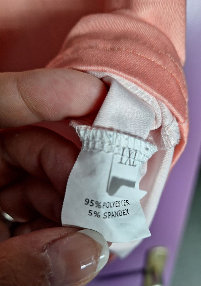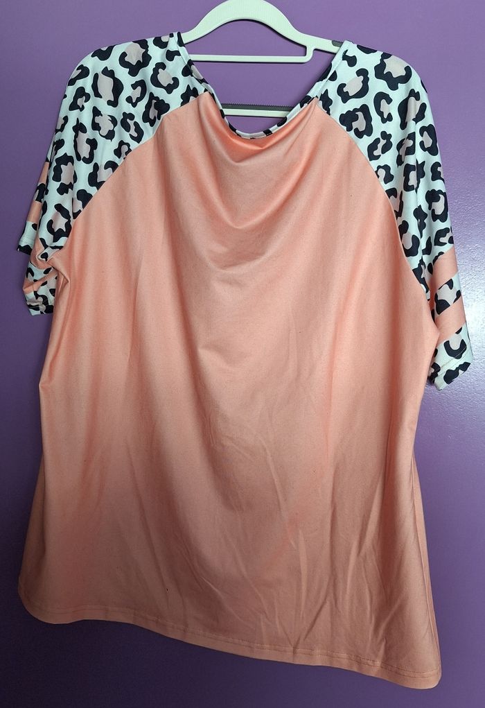 Tee-shirt manches courtes col V Couleur corail/rose clair, noir et blanc Taille XL Très bon état, peu porté