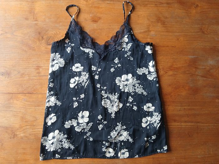 Débardeur noir a fleurs beiges, de la marque Pimkie. Taille XS. Très bon état