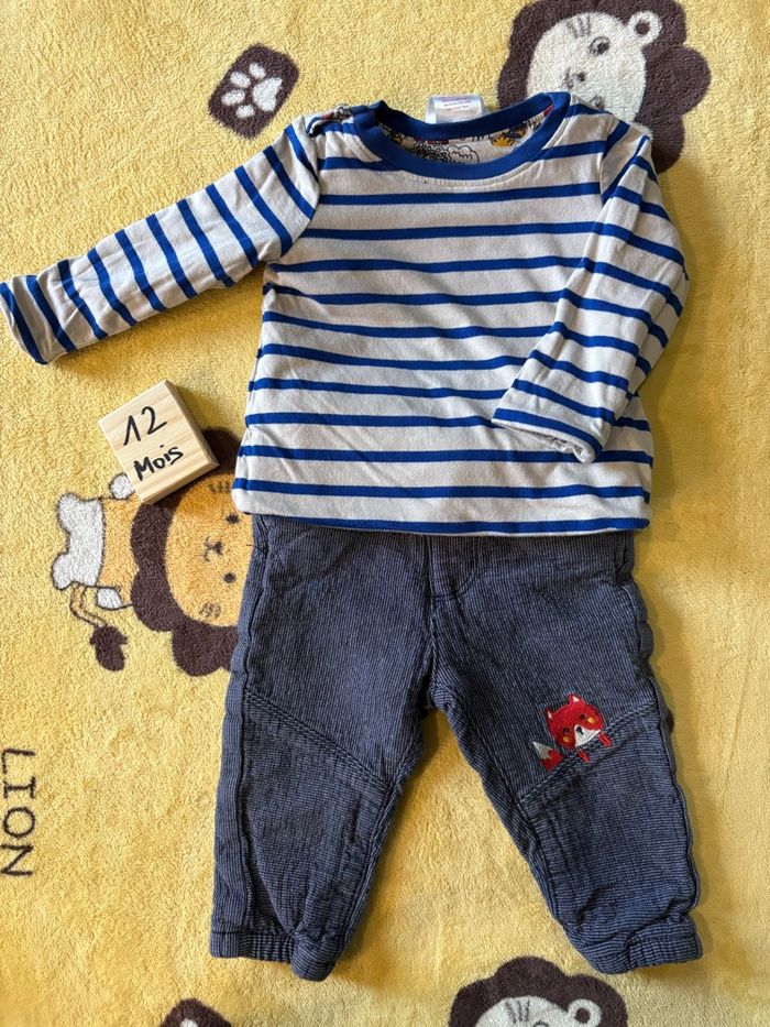 🥳reduc avec les lots activée , seul le prix est ferme 📦 Dépôt de colis presque tous les jours, de préférence mondial relais Du pareil au même DPAM 12 mois T-shirt réversible étiquette coté rayé Porté, usure normal des tissus