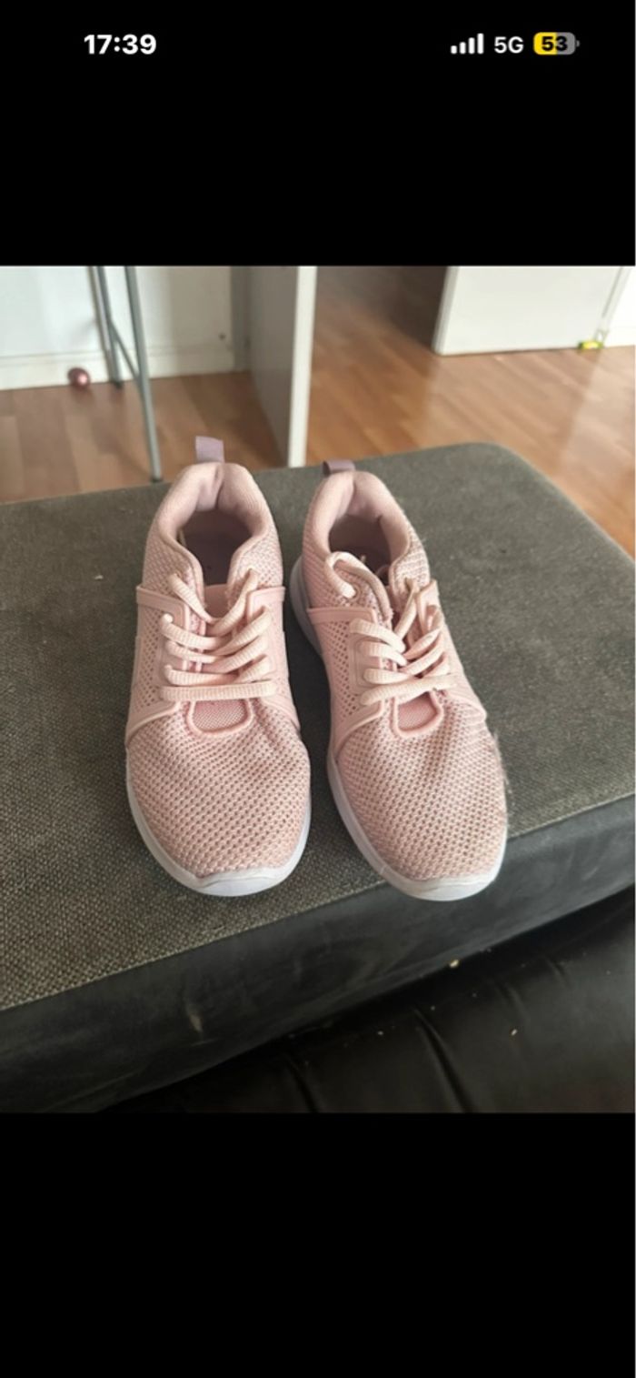 Vend une paire de basket en toile Taille 33 mais taille petit Mis deux fois pour faire sport en salle