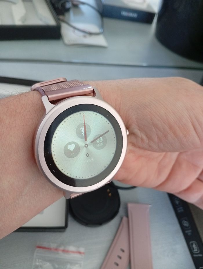【Écran Tactile et Deux Bracelets】:ELEGIANT C540 montre connectée femme bénéficie de l’écran IPS de haute qualité de 1,28 pouce, sa finition exquise peut nous faire sentir sa noble élégance. Avec l’équipement de capteur de gravité à trois axes STK8321, la conception peut être plus légère, petite et précise dans la mesure des données. Nous proposons également le bracelet en métal Milan et le bracelet en caoutchouc TPU.
