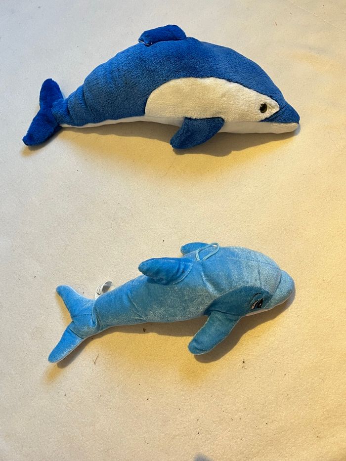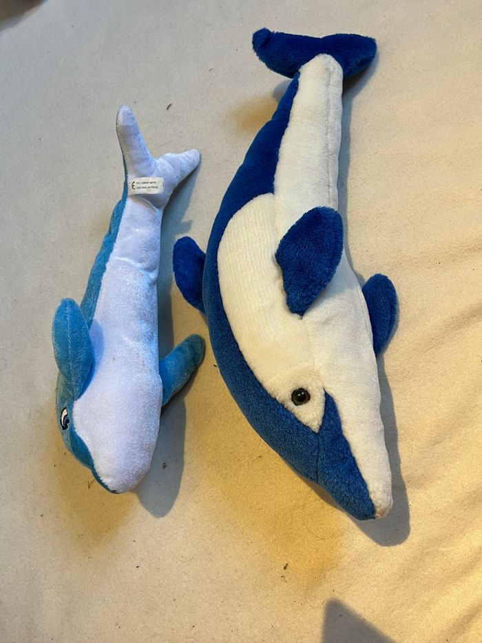vends ces deux peluches dauphin bleu et blanche -l’une est d’un bleu plus sombre que l’autre longueur 45 cm pour le plus grand - l’autre d’un bleu plus clair même longueur 35 cm pour le plus petit 1,5 euros Mes autres annonces de jeu #lma42jeu #lma42accessoire #lma42garcon2 #lma42garcon3 #lma42fille2 #lma42fille3