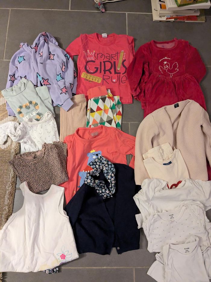Lot 17 vêtements enfants bébé fille 36 mois ou 98 cm environ ou 3 ans okaidi Kiabi tex - photo numéro 1