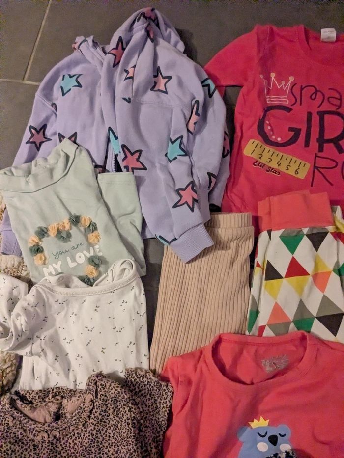 Lot 17 vêtements enfants bébé fille 36 mois ou 98 cm environ ou 3 ans okaidi Kiabi tex