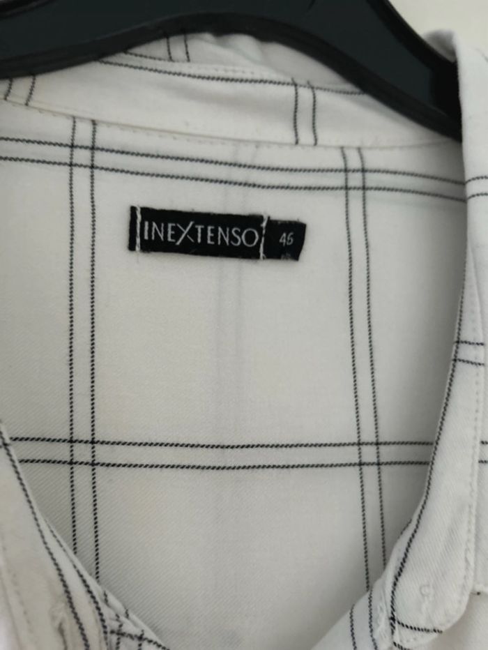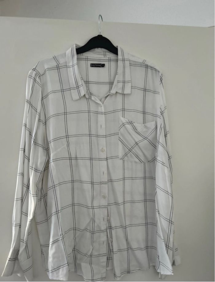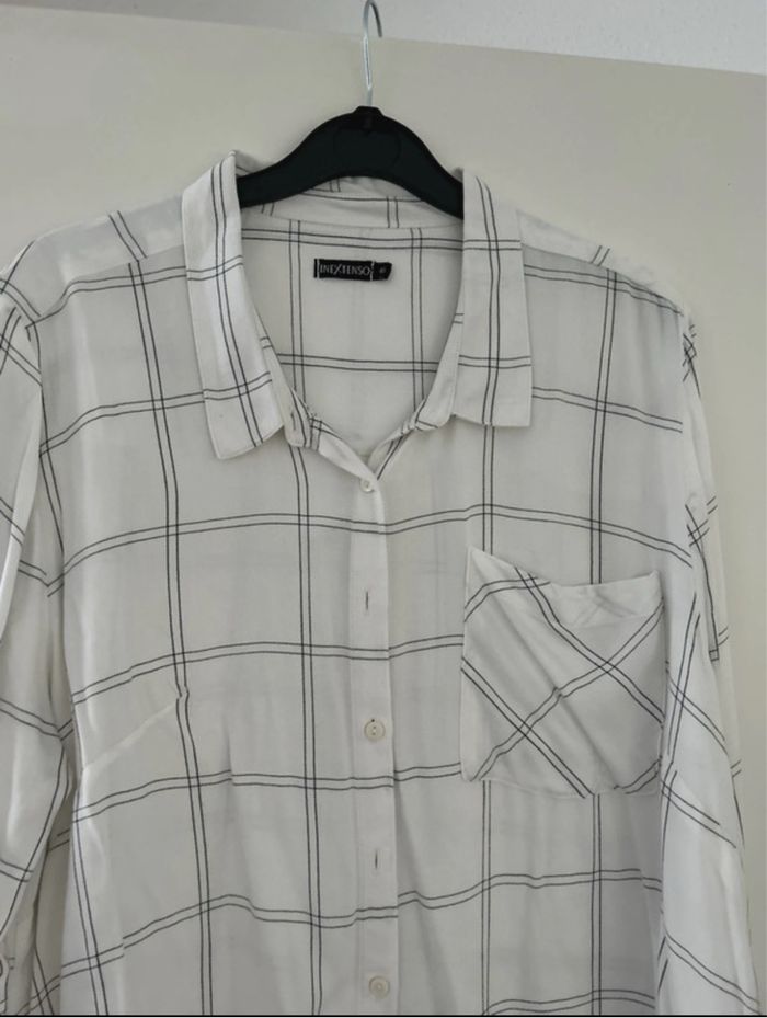 Chemisier femme léger Manche longue Blanc à rayure noire Taille 46 Très bon état