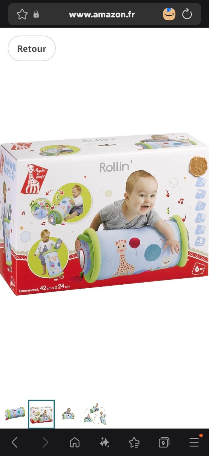 Rouleau à escalader, à faire rouler et à chevaucher pour développer la motricité et l'équilibre de bébé. Le Rollin’ Sophie est un jouet multifonctions qui se transporte partout ! Tout est pensé pour éveiller les sens de bébé. Un miroir et des contrastes noir/blanc pour stimuler sa vue. Un filet à soulever afin d'éveiller la curiosité de bébé. Des balles sonores à l'intérieur du rouleau à faire rebondir Un anneau de dentition pour soulager les gencives lors des poussées dentaires. Lavable en machine à 30 degrés