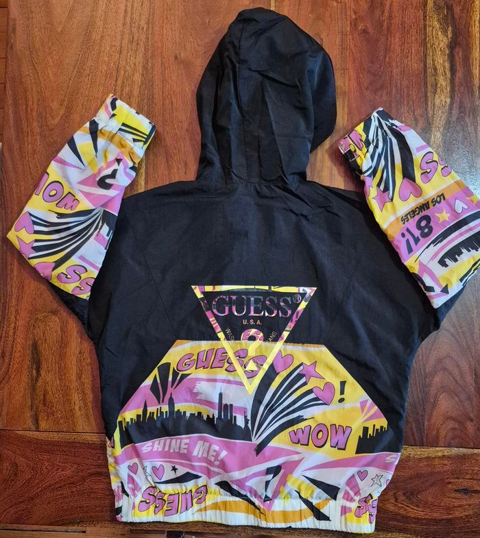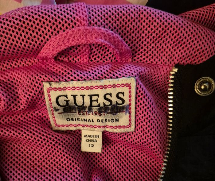 Blouson Guess Pop à enfiler avec capuche Fermeture et boutons en haut au niveau col et poitrine Doublure rose filet, Polyester Poches sur les côtés 12 ans/fille (nom de ma fille qui était inscrit caché sur l'étiquette)