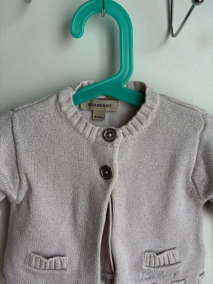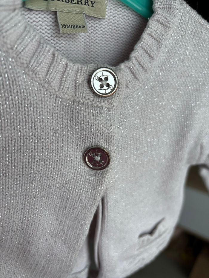 Petit gilet burberry rose clair fils pailletés argenté taille 18 mois je conseille 12/18 mois