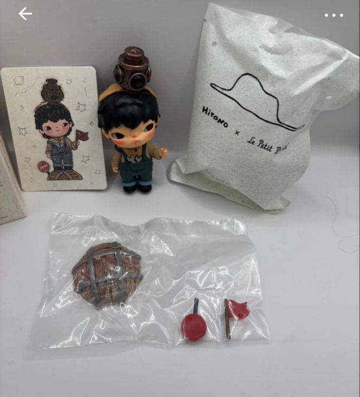 La figurine est vendue complète, avec : • la boîte originale POP MART, • le sachet d’origine, • la carte du personnage, • et les accessoires (socle, pomme, drapeau, éléments décoratifs). ✨ Détails : • Marque : POP MART • Collaboration : Hirono x Le Petit Prince • Type : figurine art toy / blind box • État : complet (avec accessoires et packaging) • Style : poétique, artistique, collector 💫 Une pièce idéale pour les collectionneurs, les fans du Petit Prince ou les amateurs d’art toys raffinés. Parfaite aussi comme cadeau unique et symbolique.