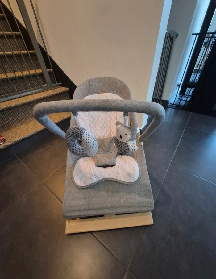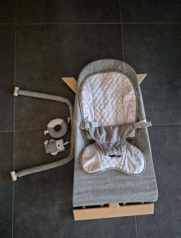 Transat Nested Gravity Convient de la naissance à 9kg Conçu pour rebondir avec le mouvement naturel de bébé 3 positions d’inclinaison Harnais de securité 3 points Se plie totalement a plat Arche avec 2 jeux Excellent etat