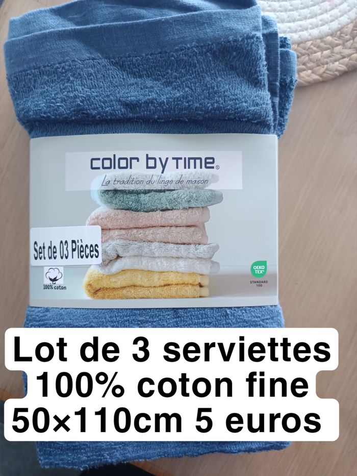 Lot de 3 serviettes neuf 50x110cm 100%coton