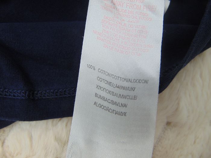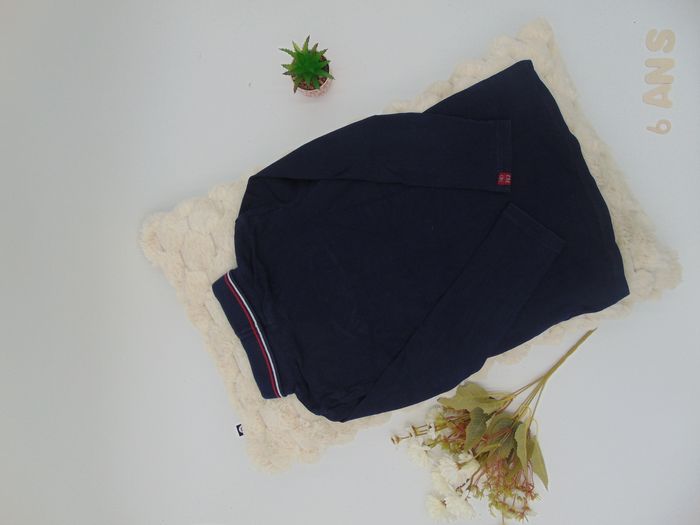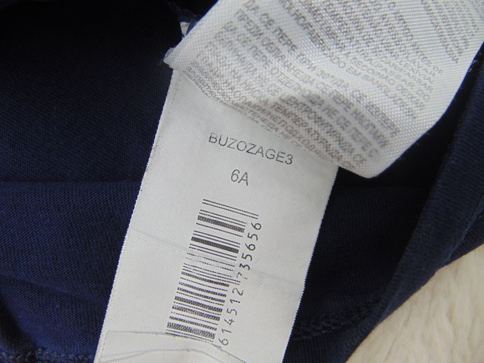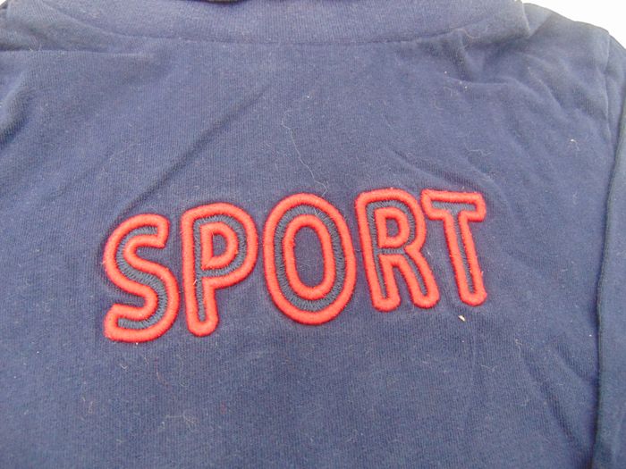 - Couleur bleu marine - Bandes rouges et blanches sur le col - Ecriture " sport" en relief rouge et bleue marine - Aucune tâche ni trou