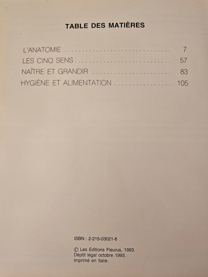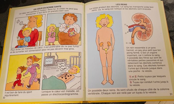 Grâce à un texte simple et à des images souvent teintées d'humour ou de tendresse, l'enfant, page après page, va découvrir comment fonctionne son corps. Il va comprendre pourquoi il doit manger, se laver, dormir ou faire du sport. il va apprendre aussi comment bébé se forme dans le ventre de maman Editeur fleurus Hauteur 19 cm Largeur 23 cm