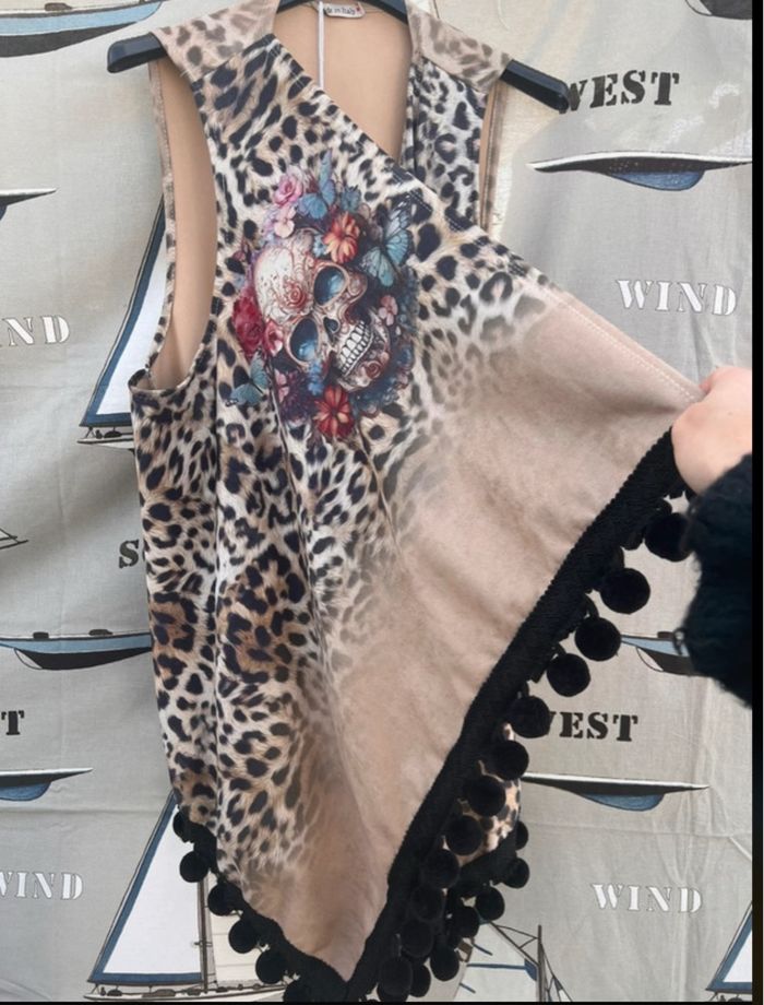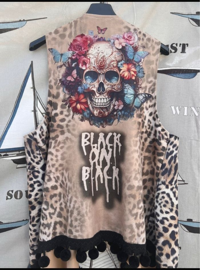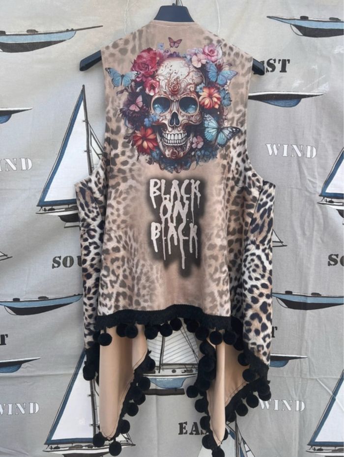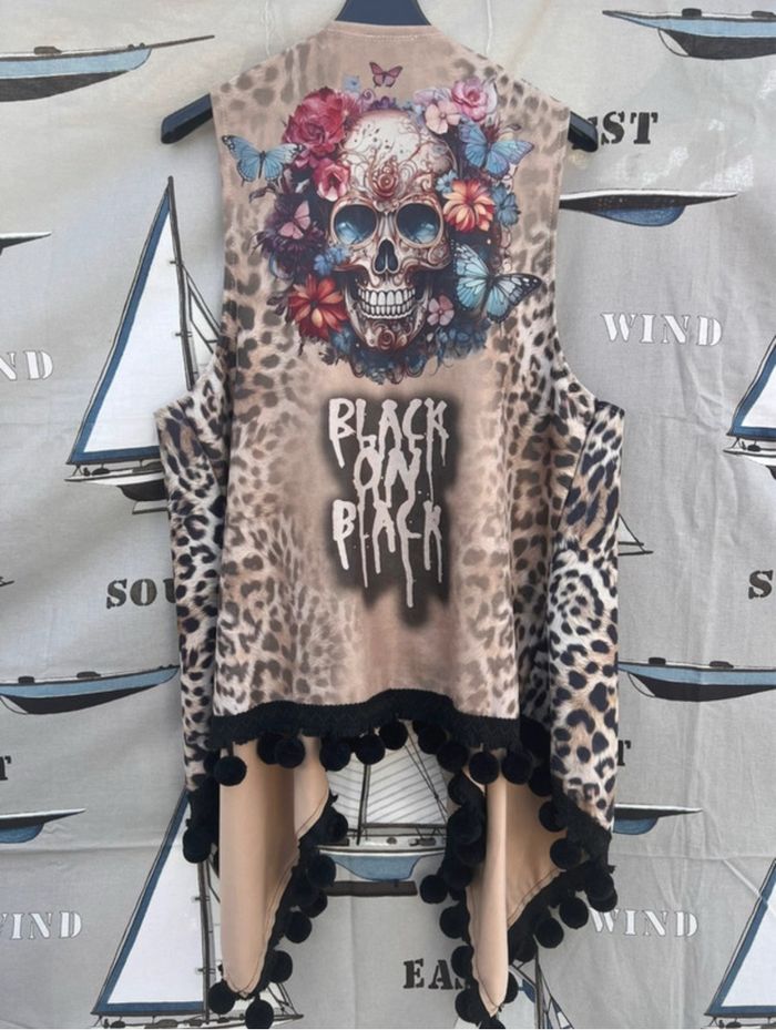 Veste en suédine imprimé tête de mort Pompons sur le bas Taille unique Convient aussi bien à un 36 qu’à un 42/44
