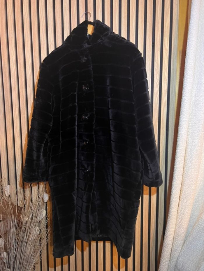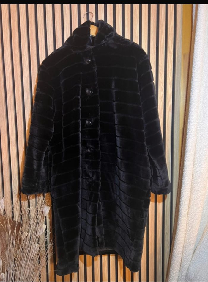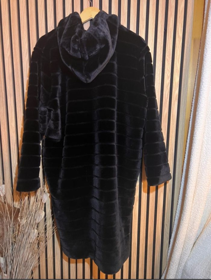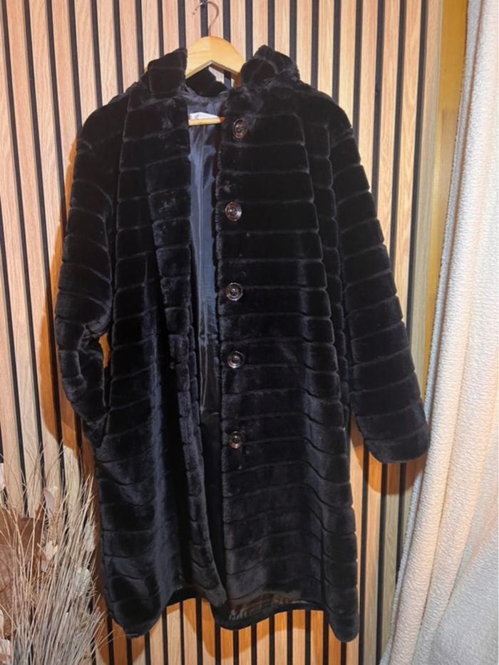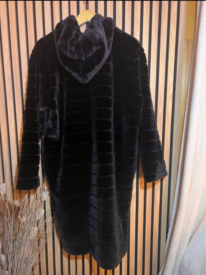 Manteau mi long en fausse fourrure Coupe oversize Fermeture boutonnée 2 poches sur les côtés Capuche à l’arrière Taille unique Convient aussi bien à un 38 qu’à un 42/44