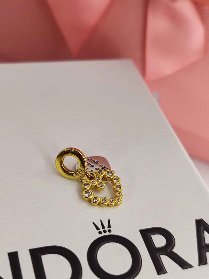 vend ce superbe charm composé de deux éléments mobile attachés à un anneau doré. argent 925 excellent état compatible avec le bracelet Pandora