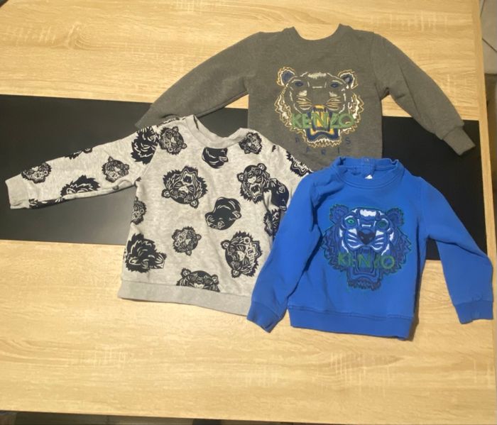 Vends lot de pulls de la marque Kenzo, taille 2/3 ans. Ils sont en très bon état. Pulls confortables, de qualité.