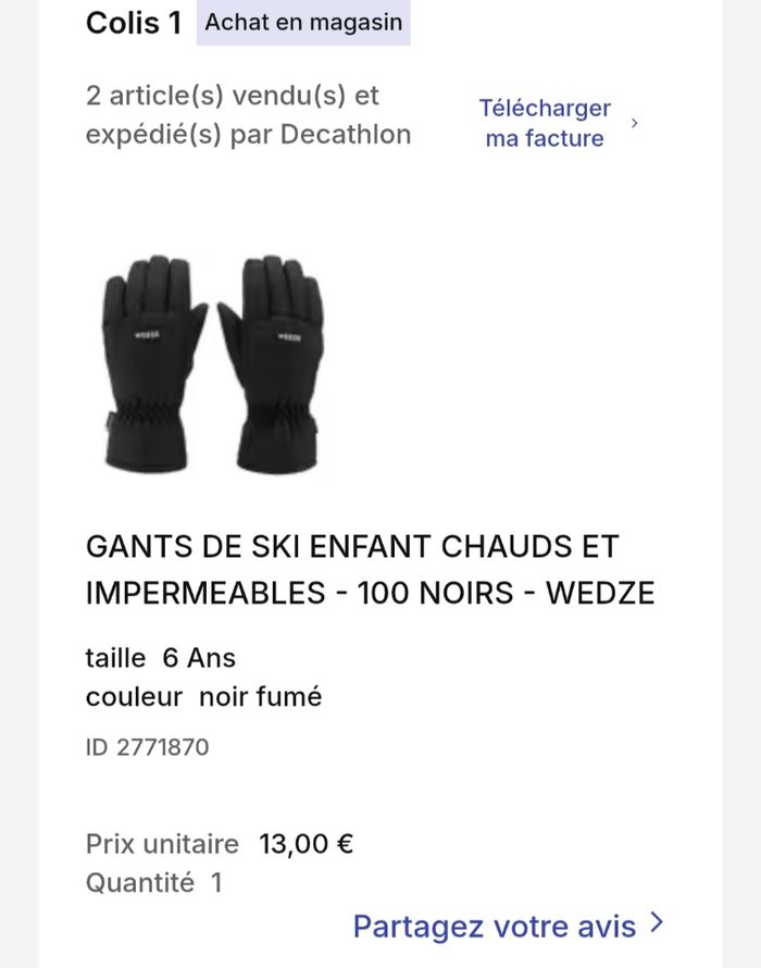 Paire de gants de ski noire Wedze en Taille 6 ans  - photo numéro 1