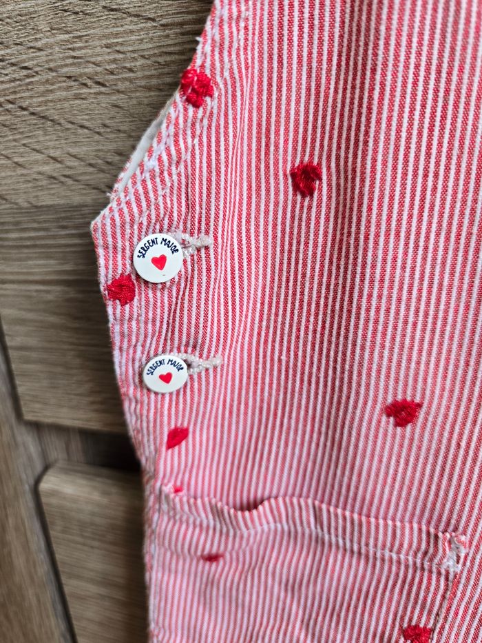 Lien direct vers les tailles équivalentes dans mon dressing : #fdhsarah24mois #fdhsarahSGMJ 📜 Ensemble comprenant : - Salopette courte en matière en canvas rouge et écru avec des broderies coeurs rouge. Ref : KAPEPITA - Body manches courtes en matière en coton cotelé écru ajouré coeurs. Col en popeline avec broderies fleurs bleu et coeurs rouges. Manches bouffantes volantées. Ref : KAPLUME Collection : Rencontres sur la Seine Taille 📏 : 24 mois 86 cm État 🔍 : Très bon état, micro tache sur le body voir photo Marque 🏷️ : Sergent Major Je suis disponible pour toutes questions ou photos supplémentaires. 📦 L’envoi se fait le plus rapidement possible Bon Shopping