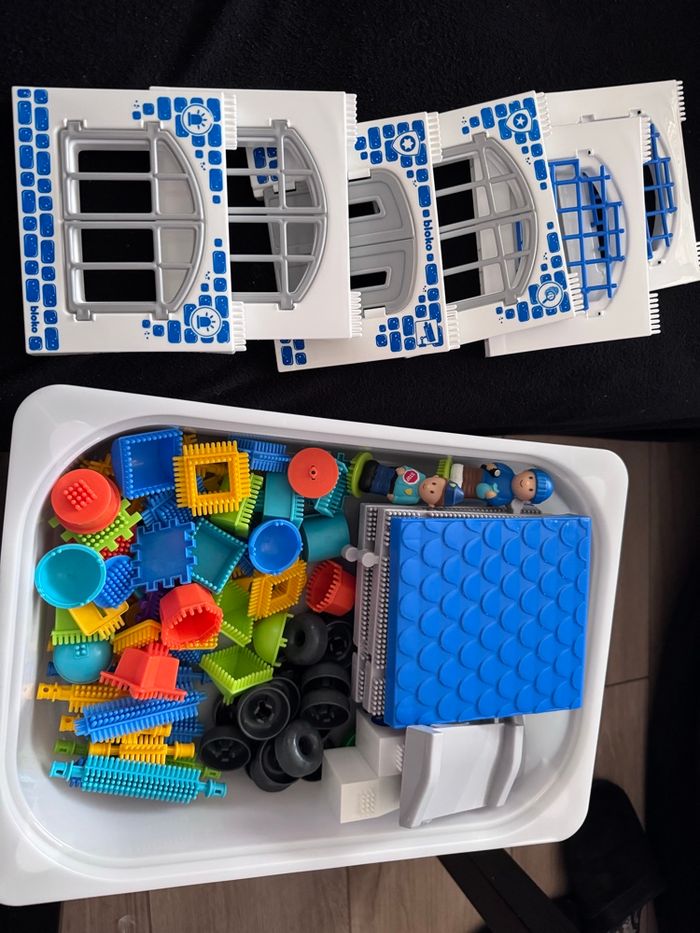 Très bon état Juste la boîte qui est un peu abîmée (dessin à l’intérieur - voir photo) Jeu de Construction Enfant Premier âge dès 12 Mois Avec 2 figurines 3D ⭐ Développe l’imagination, la créativité, l’habilité, la coordination des mouvements et le repérage dans l’espace de l’enfant, tout en l’amusant ⭐ Nombreux blocs de couleurs et de formes variées : une infinité de combinaisons et constructions possibles ⭐ Très facile à emboiter et à déboiter ⭐ matière souple et très résistante Parfaitement adapté aux enfants de 12 mois et plus