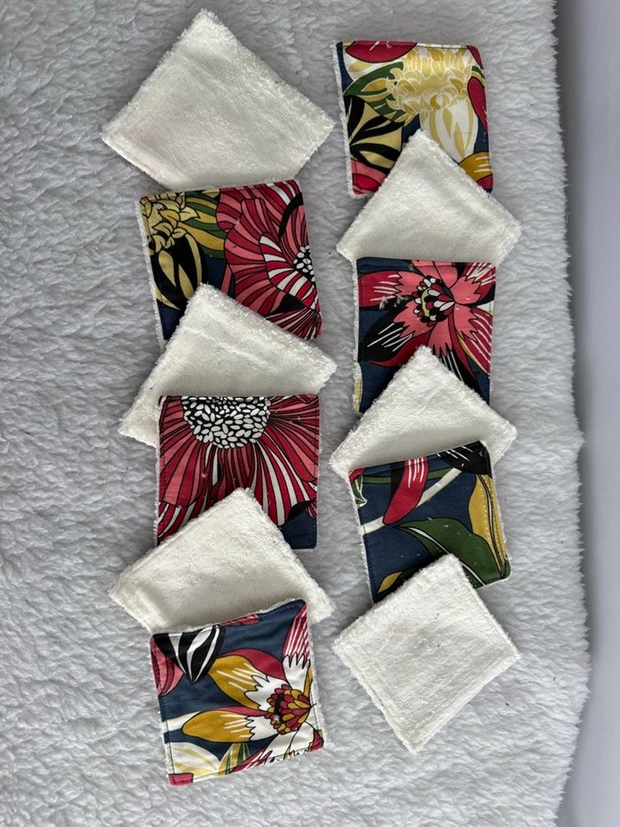 #lingettekmcreation En coton et éponge bambou okeotex Lot de 12, dimension 10 par 10 cm minimum
