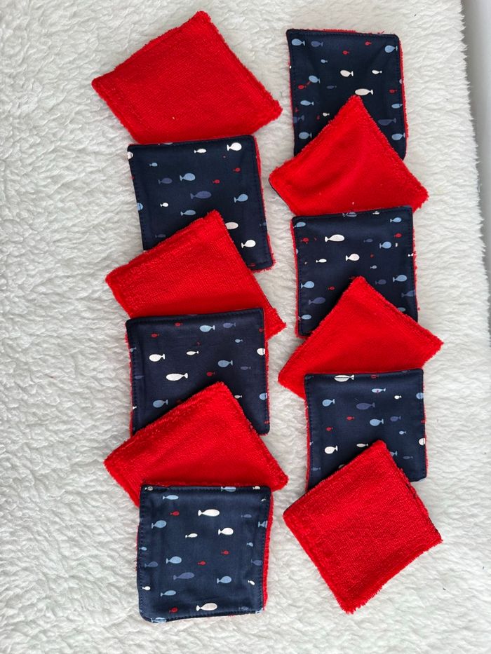 #lingettekmcreation En coton et éponge bambou okeotex Lot de 12, dimension 10 par 10 cm minimum
