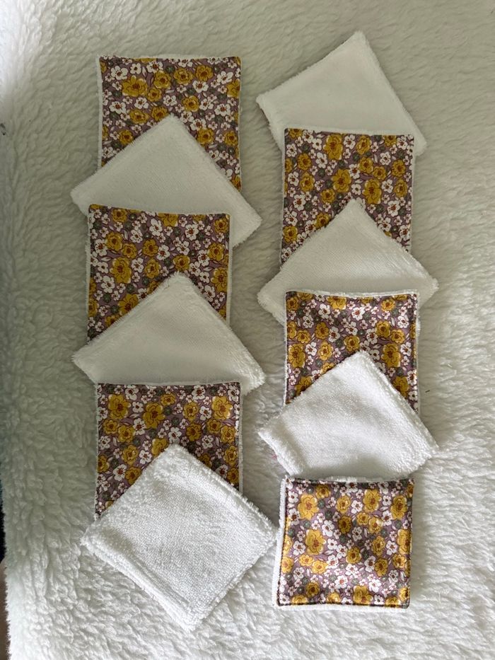 #lingettekmcreation En coton et éponge bambou okeotex Lot de 12, dimension 10 par 10 cm minimum