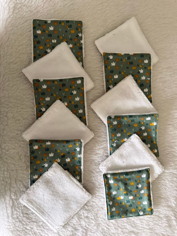 #lingettekmcreation En coton et éponge bambou okeotex Lot de 12, dimension 10 par 10 cm minimum